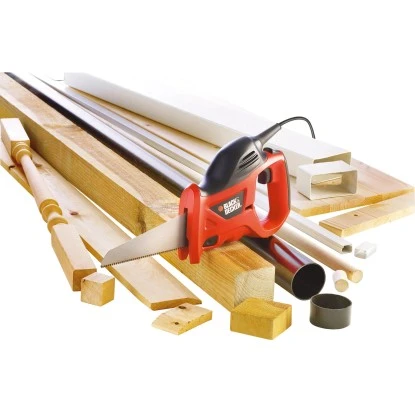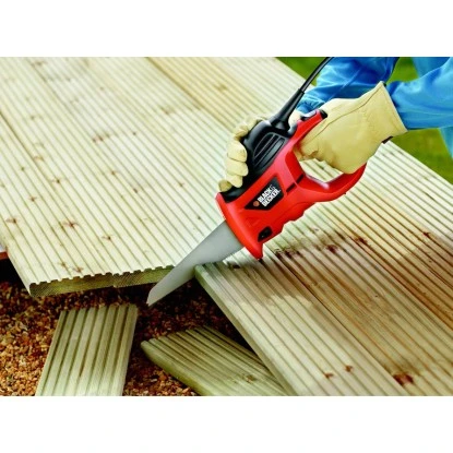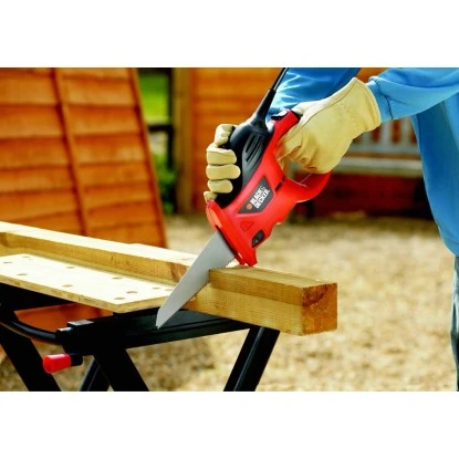 Die Black+Decker Elektro-Handsäge 400 W KS880EC ermöglicht es einfach, sicher und zeitsparend zu Sägen. Ob Zaunpfähle, Rohre, Bodendielen oder Arbeitsplatten, die Sägeblätter werden werkzeuglos durch Knopfdruck schnell und einfach gewechselt. Mit dem stufenlos regelbaren Elektronikschalter ist eine optimale Anpassung an das zu sägende Material möglich. Das Gerät muss nicht mehr am Material angesetzt werden, es kann darin frei eintauchen. Die optimale Ergonomie des Gerätes ermöglicht es so, komfortable und effektiv zu sägen. Das Gebläse hält dabei den Anriss sauber.