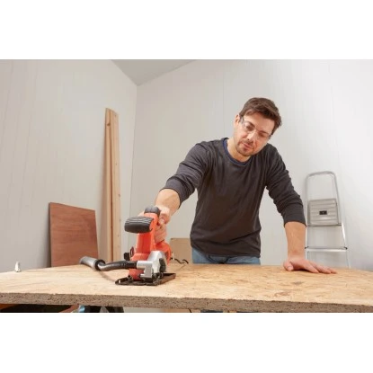 Die Black+Decker Kompakt-Handkreissäge BES510 ist eine vielseitige und sehr kompakte Kreissäge. Sie schneidet problemlos Holz, Metall, Kunststoff, Fliesen, Kupferrohre und Bodenbeläge. Dabei sorgt der 400 W-Motor für einen schnellen Sägefortschritt und eine hohe Schnittqualität. Ausgestattet mit einem Aluminium-Druckguss-Sägeschuh und einer Metallschutzhaube garantiert sie eine hohe Stabilität und eine lange Haltbarkeit.