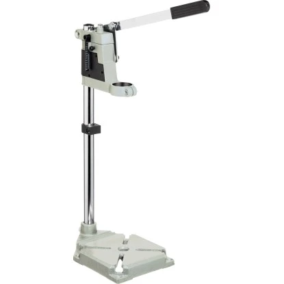 Der ELLIX Bohrständer eignet sich zur Aufnahme einer Bohrmaschine und macht einen stationären Einsatz mit dieser möglich. Er ist mit einer Euronorm-Aufnahme 43 mm, einer Gussplatte sowie einer verchromten Bohrsäule ausgestattet. Geliefert wird er inklusive Tiefenstopp, Rückholfeder und Sechskantschlüssel.
