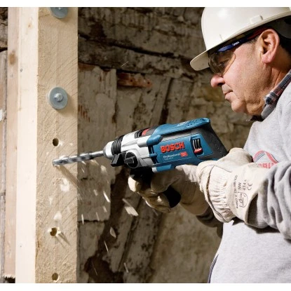 Die Bosch Professional Schlagbohrmaschine GSB 20-2 ist für sämtliche Bohrarbeiten in Mauerwerk, Stein, Holz und Metall geeignet. Mit einem leistungsstarken Motor mit 850 W erzielt die vielseitige Bohrmaschine einen schnellen Arbeitsfortschritt.
