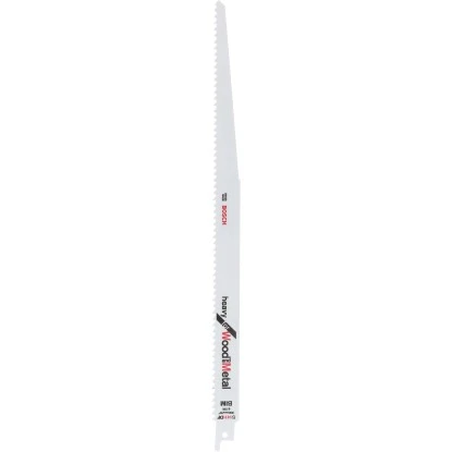 Das Bosch Säbelsägeblatt Pro S 1411 DF Heavy for Wood and Metal ist für Holz mit Nägeln/Metall, Spanplatten (< 250 mm) und GFK/Epoxy (< 60 mm) geeignet.