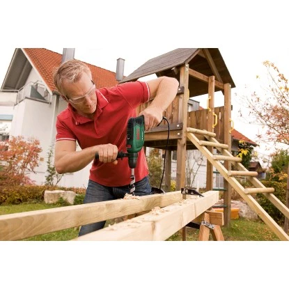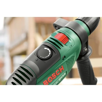 Mit der Bosch Schlagbohrmaschine PSB 750 RCE sind auch größte Durchmesser und Kraftanforderungen dank Softgrip, geringem Gewicht und gleichzeitig kompakter Bauweise kein Problem. Die hervorragende Handlichkeit sorgt für kontrollierten und optimalen Benutzerkomfort. Der Schlagbohrer ist mit einem Funktionsschalter ausgestattet und ermöglicht so Schrauben, Bohren und Schlagbohren. Mit dem leistungsstarken 750 W Motor und 14 mm Bohr-Ø in Beton gehen sogar schwere Arbeiten leicht von der Hand. Die Drehzahl kann je nach Material über einen Schalterdrücker und ein Stellrad angepasst werden, z.B. für fein dosiertes Anbohren glatter Flächen oder beim Schrauben. Auch unter Belastungen wird die Drehzahl automatisch konstant gehalten. Für noch mehr Komfort ist ein integrierter Schalter für Dauerlauf vorhanden.