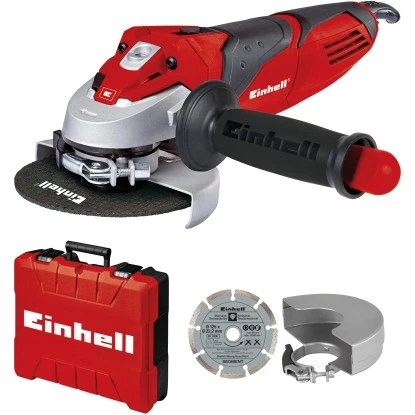 Das Einhell Winkelschleifer-Set TE-AG 125/750 Kit beeindruckt durch seine schlanke Form sowie seinen sehr ruhigen Lauf, der durch die hochwertige Lagerung zustande kommt. Der 750 W starke Winkelschleifer verfügt über einen robusten Metallgetriebekopf, der durch die optimale Kraftübertragung und den vibrationsarmen Lauf das Arbeiten an schwer zugänglichen Stellen erleichtert. Dank der Scheibenschutz-Schnellverstellung lässt sich der Schleifer an jede Aufgabe anpassen. Die Spindelarretierung sorgt für schnelle und einfache Werkzeugwechsel.