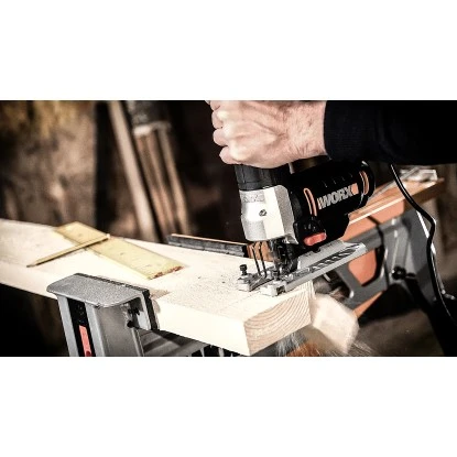 Die kompakte Pendelhubstichsäge WX478.1 von Worx liegt gut in der Hand und besticht dank 4-fach Pendelhub mit schnellem Arbeitsfortschritt. Die Drehzahlelektronik führt zu erhöhter Kontrolle beim Sägen verschiedener Materialien. Die Sägeblätter lassen sich werkzeuglos wechseln und der integrierte Anschluss zur Staubabsaugung sorgt für einen staubfreien Arbeitsplatz.